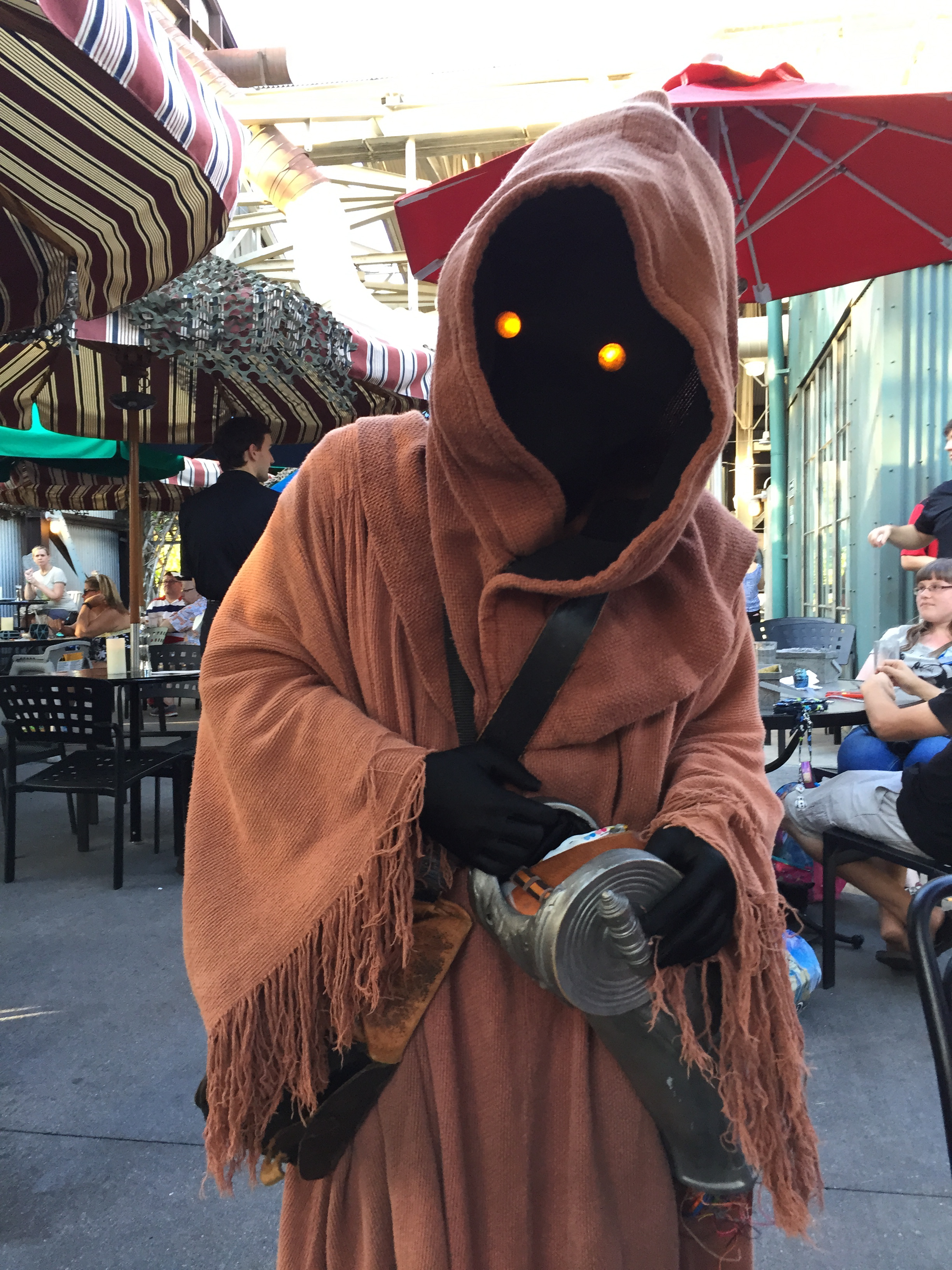 Our server was not great so I’m not sure what planet, oops, I mean restaurant she came from, but I was a little disappointed in the level of service. The other thing we noticed is the food runners had no idea where the tables were. We sat down and he brought food to us, we said we hadn’t ordered yet and he wandered around looking confused. Once done with our meal, he tried to give us food a second time lol. This was part of our entertainment for the night as we watched to see how many tables he went to before he got the correct one. The great and unexpected part was that we go to see some characters: we saw Jawas! They move kind of quick so have your camera ready and hop up to get a photo if they come to your table. We also saw two characters from the Star Wars Rebels animated series. I wasn’t familiar with it so I didn’t take a picture of them.