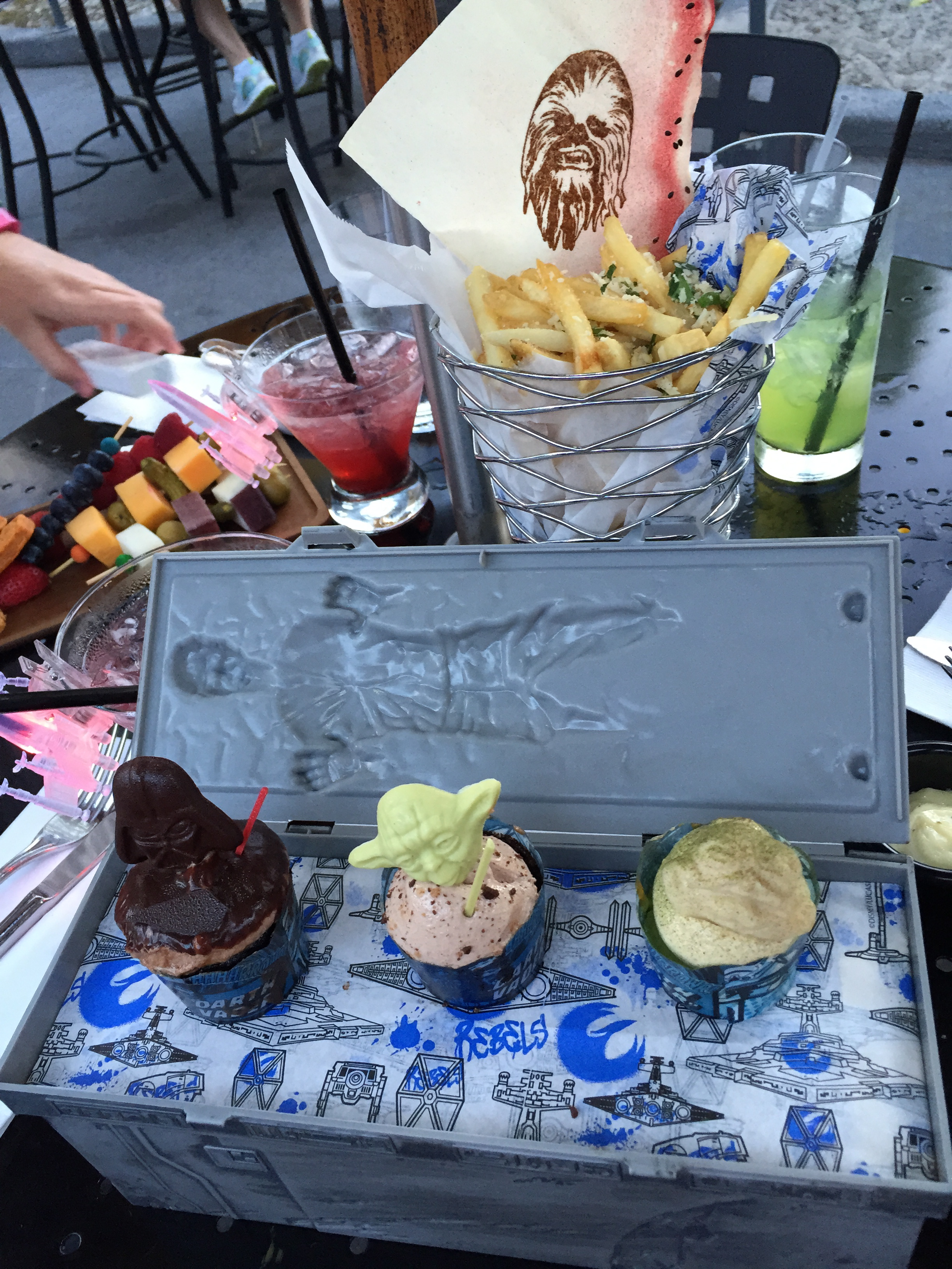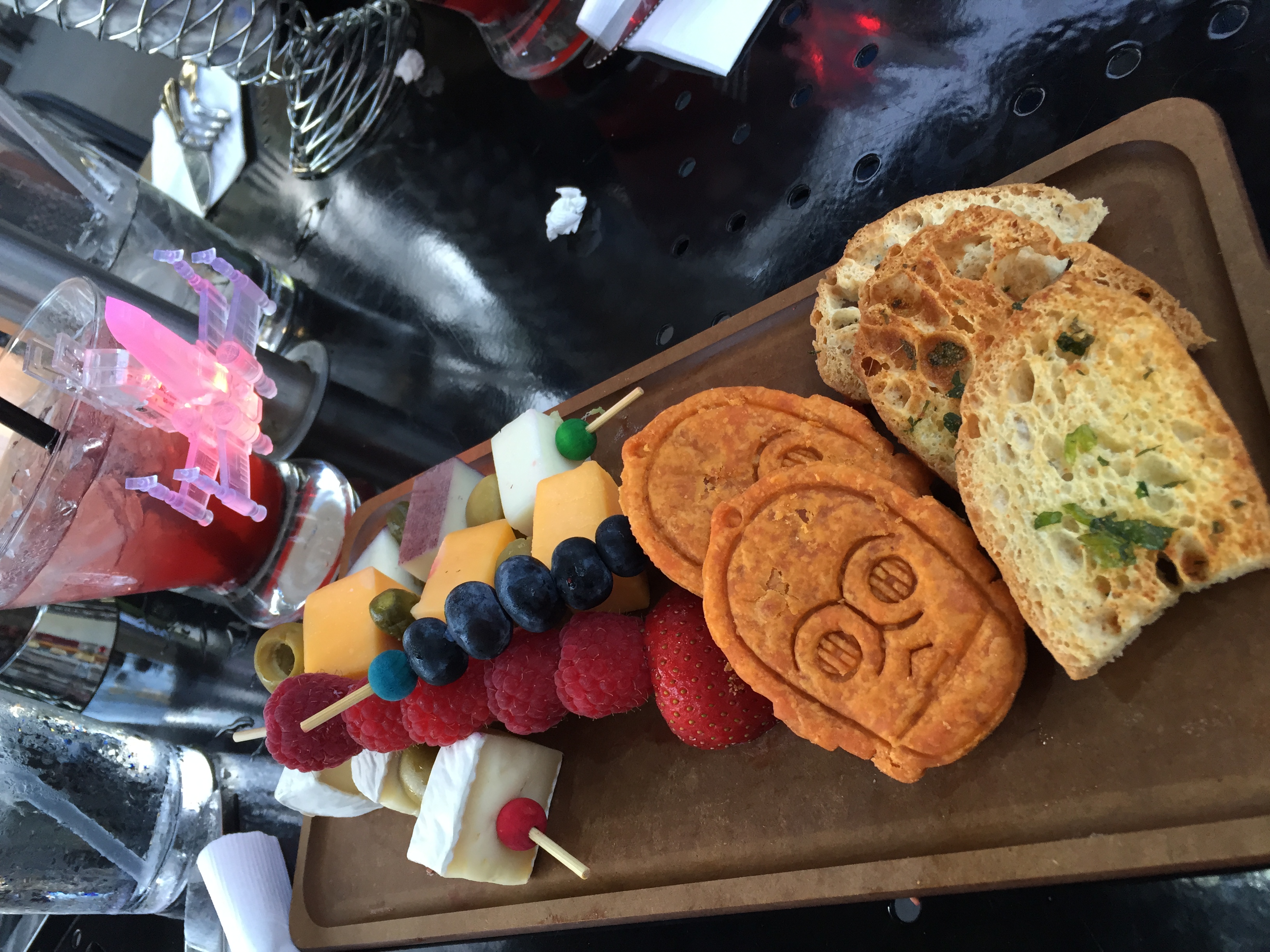 Ilum Fruit and Cheese Sabers – This was really good and had a great presentation. The cheese and fruit were all good. The C-3PO cheddar crackers weren’t really crackers. I assume they were going for a cheeze-it type of cracker, but these were soft and flaky kind of like a dense biscuit. They probably were crispy when they came out of the oven. Still good but would have been better with that crispy texture.