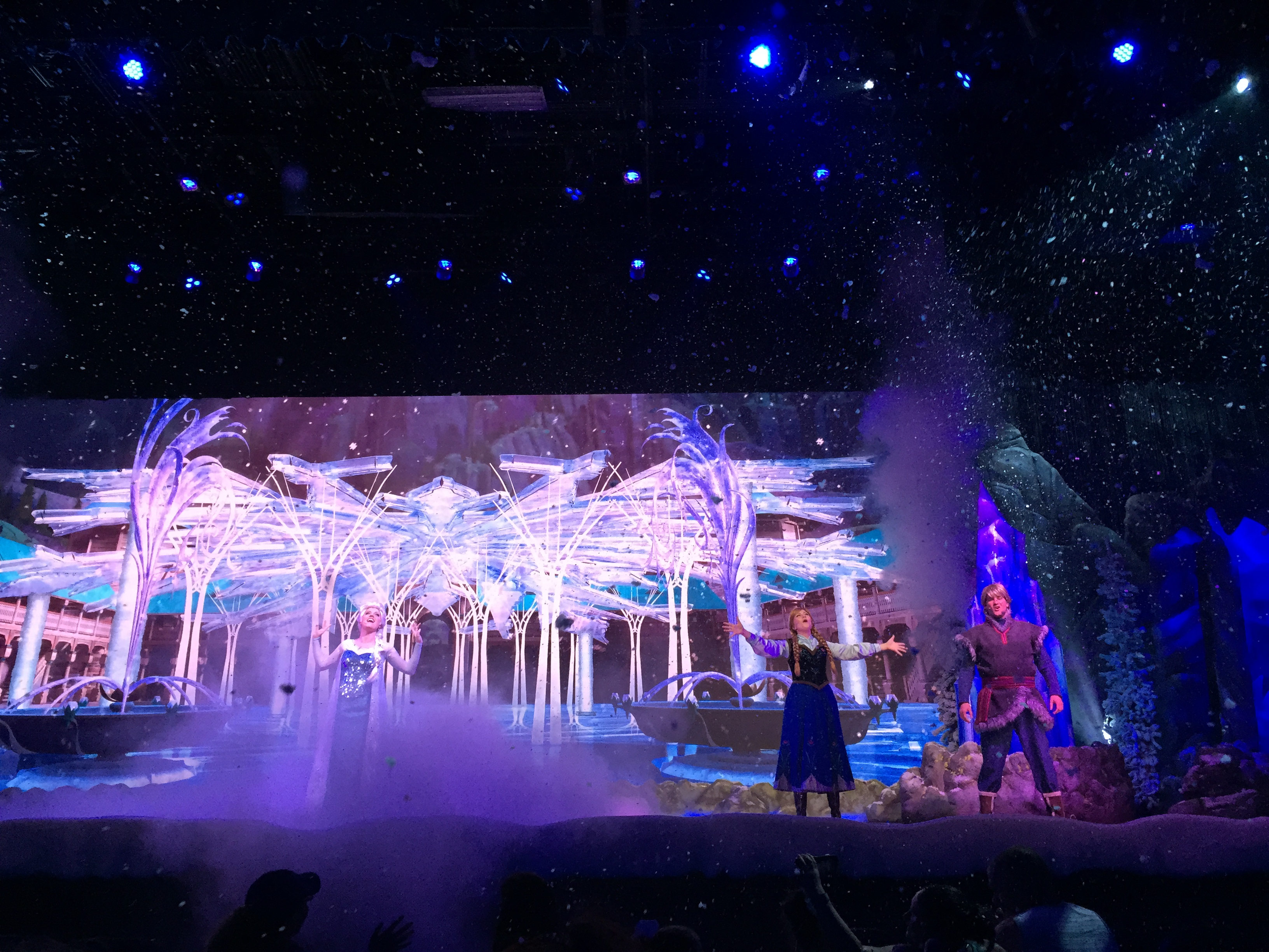 - Frozen Royal Welcome – Twice each day at 10:30 and 1:30 there is a mini parade with Elsa, Anna, Kristoff and Olaf and even snow flurries.