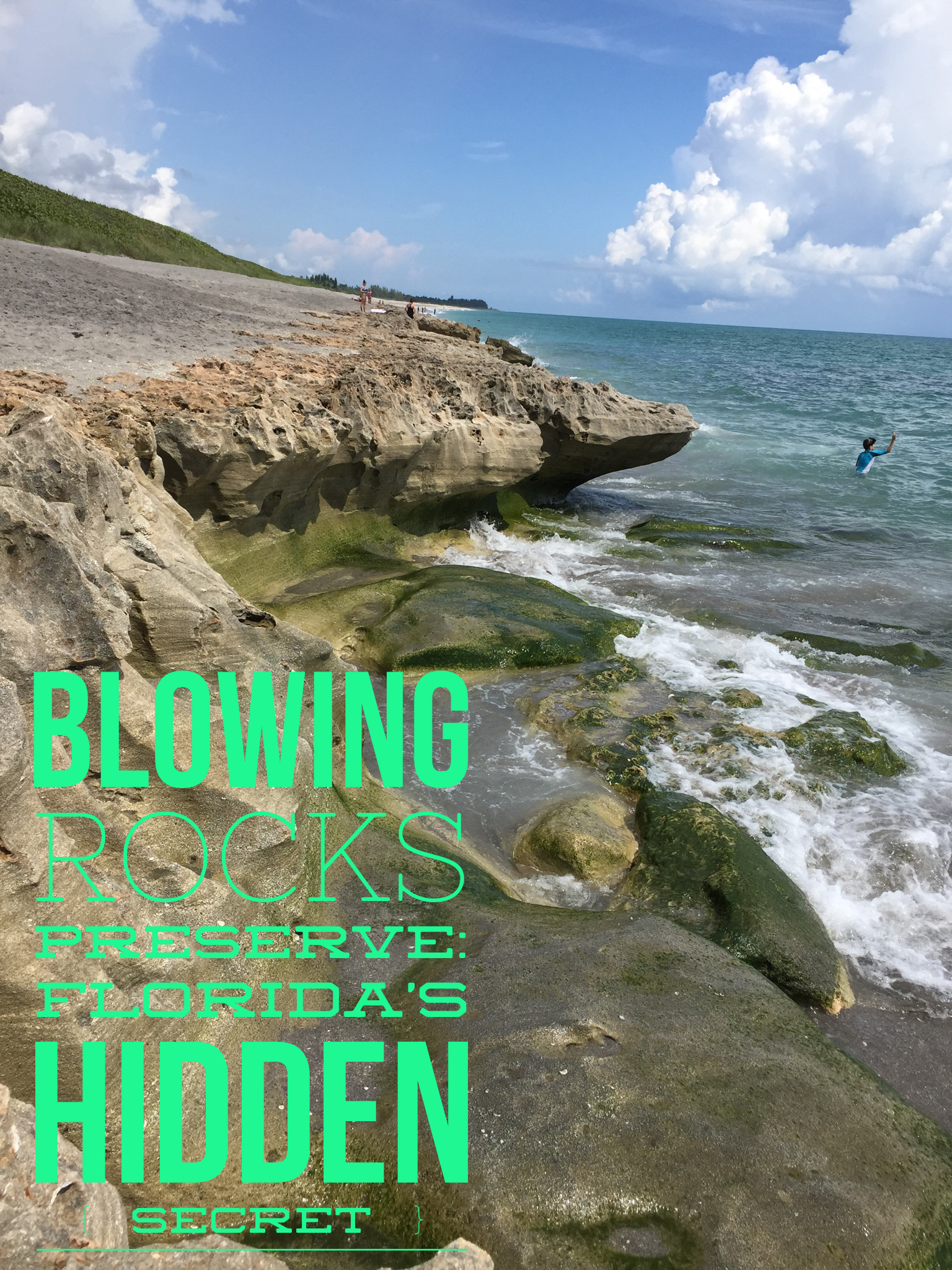 You need to plan your trip based on the tides, whether you want to swim (low tide) or see the blowing rocks (high tide). Apparently, if there is a storm the blowing rocks can reach up to 50 ft. If you plan to climb around on the rocks, which I couldn’t resist, make sure you wear shoes that can handle it.