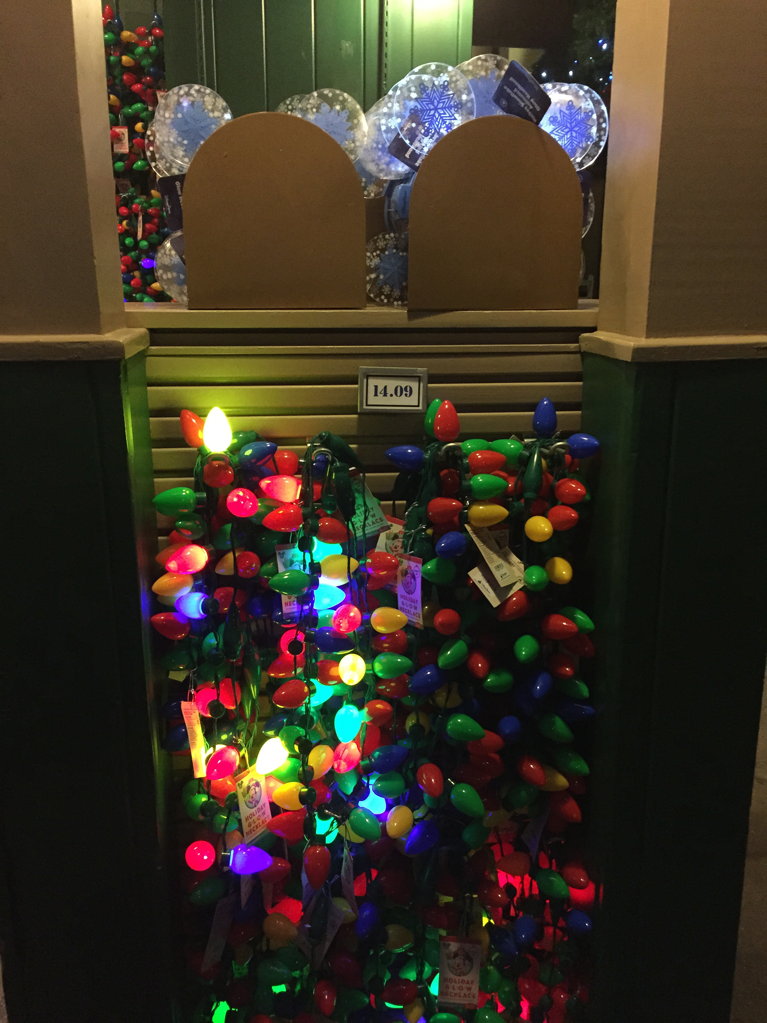 I got to see lots of hidden special items, my favorite was the Christmas Story leg lamp and the Muppets-themed balconies(take a closer look at the Christmas balls when you find this area).  Make sure you walk down all the alleys and don’t forget to look up in some areas. See if you can find Tinkerbell pointing out the fact that it is the 20th year celebrating the lights.