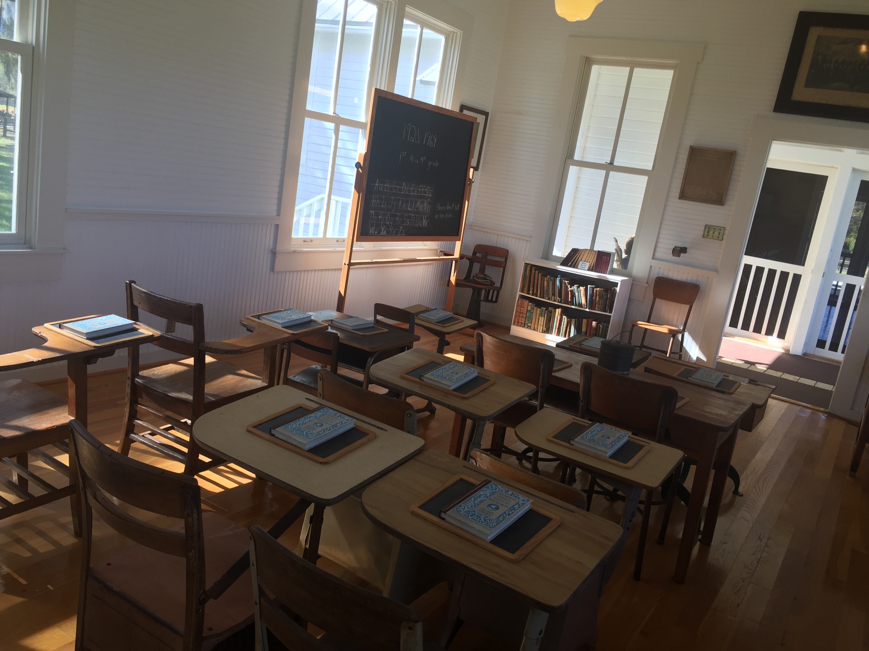 They even had an old schoolhouse on the property, which was really neat to explore. The schoolhouse included a separate building for the cafeteria (currently housing a display of stoves throughout the ages), a theater, and the one-room classroom designed for kids of all ages. (I can’t even imagine trying to balance the educational needs of such a large variety of ages in one room like that.)